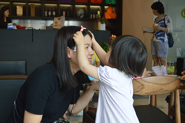 手工創作:剛從菜園里戀戀不舍離開,擁有無限的活力小朋友們仍然精力充沛。接下來是手工環節,小朋友在媽媽的指導下完成作品,代表自己的點點心意,親手送給媽媽。
