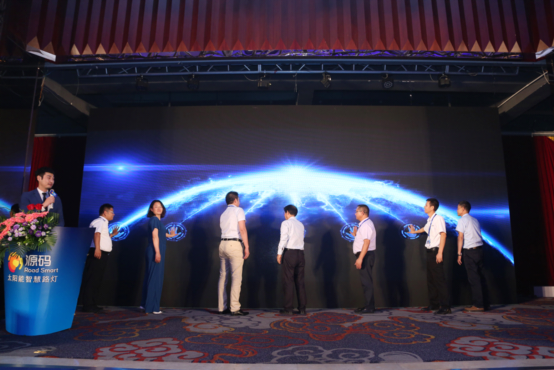 下午五點四十分,在主持人的介紹和全場嘉賓熱情的掌聲中,王興慶、項佰川、柴鈺、喜文華、黃河等一起登臺,按下大屏幕、共同啟動 [源碼太陽能路燈RS指數],為本次活動畫上了圓滿的句號。