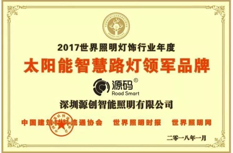 這一榮譽不僅是對源碼這一年努力所獲得的行業肯定,更是對源碼品牌價值觀念的肯定,是對源碼持續進行技術創新的肯定。未來,源碼將繼續堅持“點亮智慧之路”的發展理念,持續地研發設計智能化照明產品,從而去引領太陽能照明行業走向智能化方向,將源碼品牌打造成為太陽能智慧路燈先鋒品牌。